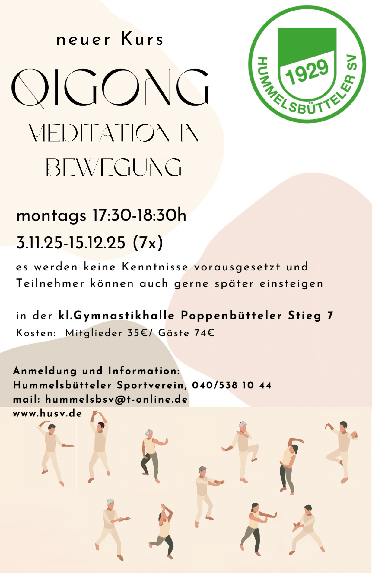 Zunächst bieten wir Qigong als Kurs an, bei reger Beteiligung möchten wir es fest in unser Sportangebot aufnehmen.